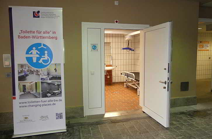 Aus einem bisherigen Lagerraum für Müll wurde nun zu einer „Toilette für alle“ umgebaut. Aufgrund der Brandgefahr war der bisherige Lagerraum alles anderes als ideal, weshalb man nach Alternativen suchte und fand. So wurde eine frei stehende Müllbehausung geschaffen und so wurde der Raum frei für eine „Toilette für alle“. Für das gesamte Projekt habe man 104.000 Euro investiert, davon allein 30.000 Euro für die Müllbehausung. Der Umbau des Lagerraums zur Toilette kostete rund 74.000 Euro. Mit 12.000 Euro unterstützte das Land Baden-Württemberg die erforderliche Zusatzausstattung einer „Toilette für alle“. „Im Ergebnis haben wir eine win-win-Situation erreicht“, so der Oberbürgermeister.