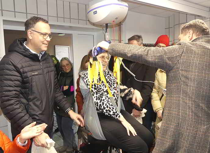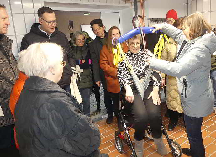 Jutta Pagel-Steidl, Geschäftsführerin des Landesverbandes für Menschen mit Körper- und Mehrfachbehinderung, lobte die Stadtverwaltung für die gelungene Umsetzung und die gute Zusammenarbeit. Im Auftrag des Ministeriums für Soziales, Gesundheit und Integration begleitete der Landesverband das Projekt von der Planung bis zur Umsetzung. Sie erläuterte den Begriff „Toilette für alle“, der oft als irreführend wahrgenommen werde, weil es eben keine Toilette für alle Menschen sei. Es handle sich vielmehr um ein Serviceangebot für Menschen mit besonderen Bedarfen. Dazu zählen Menschen mit komplexen Behinderungen, die inkontinent sind oder auch Menschen, die aufgrund einer Erkrankung einen Katheder haben. Eine normale Rollstuhltoilette reicht nicht für den Wechsel von Windeln oder Katheder aus. Dazu brauche man eine Pflegeliege für Erwachsene, einen Patientenlifter für den Transfer vom Rollstuhl auf die Liege und zurück, einen luftdichten Windeleimer und ausreichend Bewegungsfläche für Rollstuhl und Assistenz.