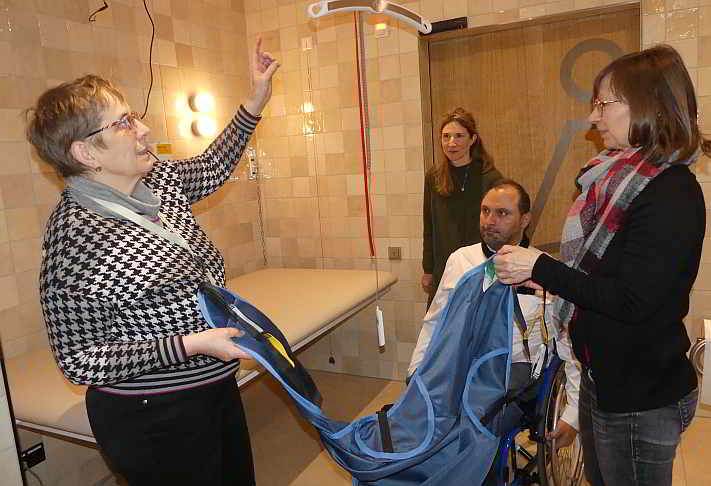 ...und danach erläutert LVKM-Geschäftsführerin Jutta Pagel-Steidl vor Ort die Funktionsweise des Lifters...<br>Foto: © Mara Sander
